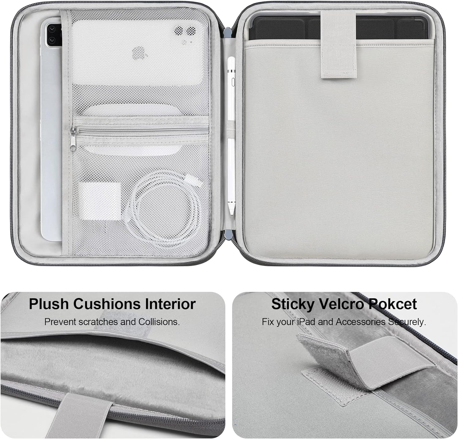 • CONVENIENT STORAGE – The main compartment for placing your tablet, and the small pocket which can not only put charger, mobile phone, USB cable, but also put your tylus pen on the other side. Keep your things in order.