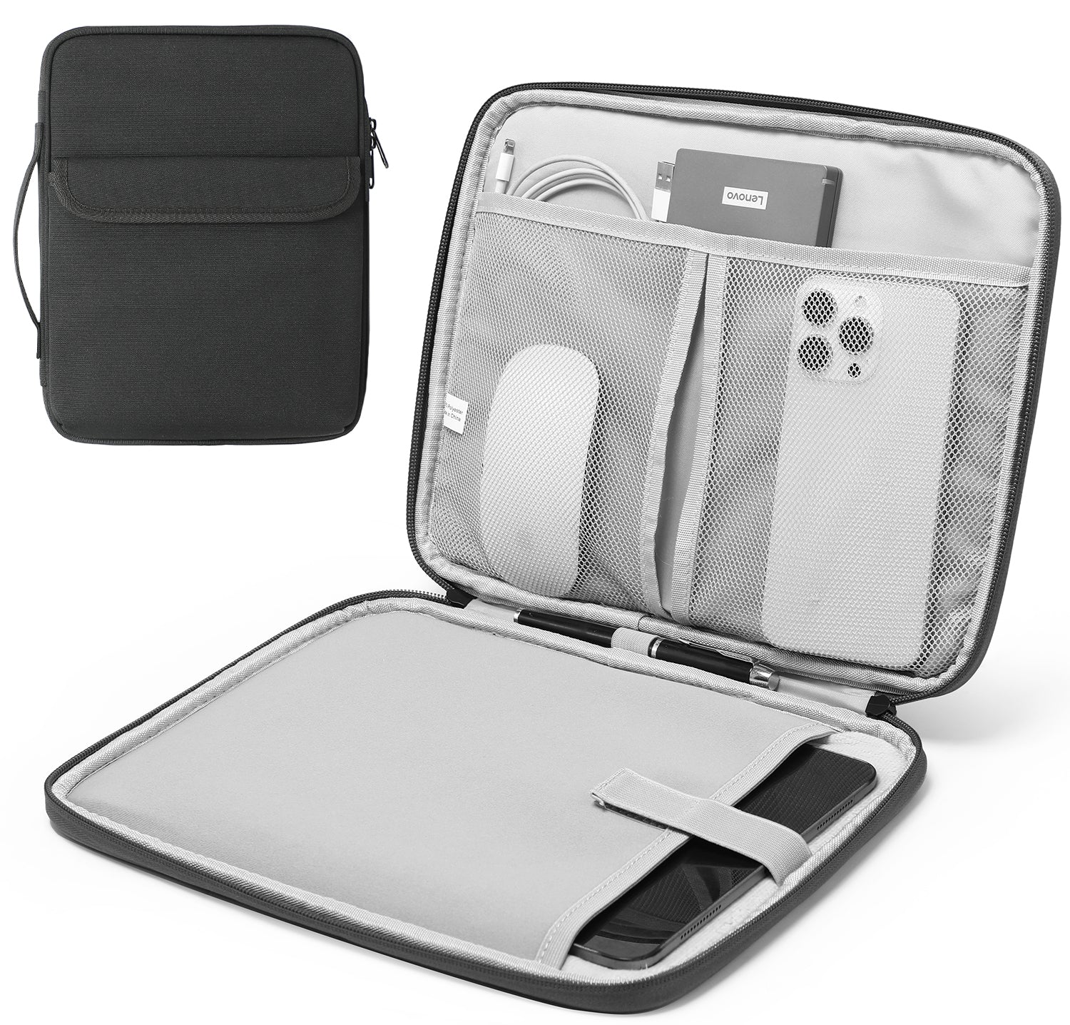 - CONVENIENT STORAGE – The main compartment for placing your tablet, and the small pocket which can not only put charger, mobile phone, USB cable, but also put your tylus pen on the other side. Keep your things in order.