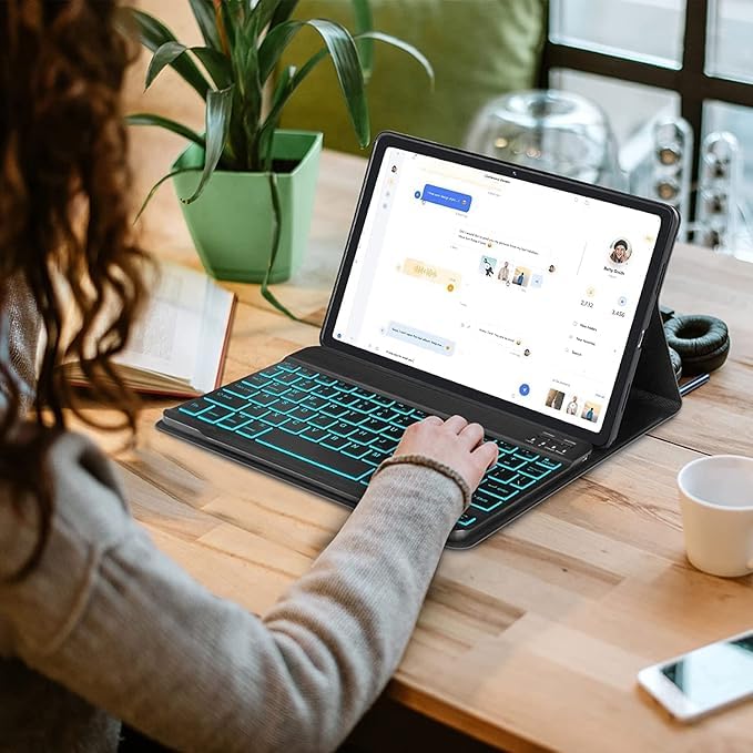 • ✔【Detachable Wireless Keyboard with Rainbow Backlit】7 colors rainbow back-light make typing fun and easy in the dark/night. The Bluetooth connection is stable and mechanical scissor keys are quiet with rebound feature. With the U.S Chipset, helping you to type stable and fast. Rechargeable battery make keyboard can work wireless for longer time, provide the freedom to read or work anywhere at any time