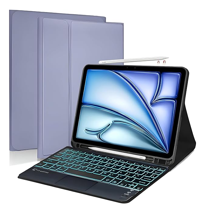 - ✔【Detachable Wireless TouchPad Keyboard with Rainbow Backlit】7 colors rainbow back-light make typing fun and easy in the dark/night, you can change the colors on keyboard's left, middle and right seperatly. The Bluetooth connection is stable and mechanical scissor keys are quiet with rebound feature. With the U.S Chipset, helping you to type stable and fast. Rechargeable battery make keyboard can work wireless for longer time, provide the freedom to read or work anywhere at any time