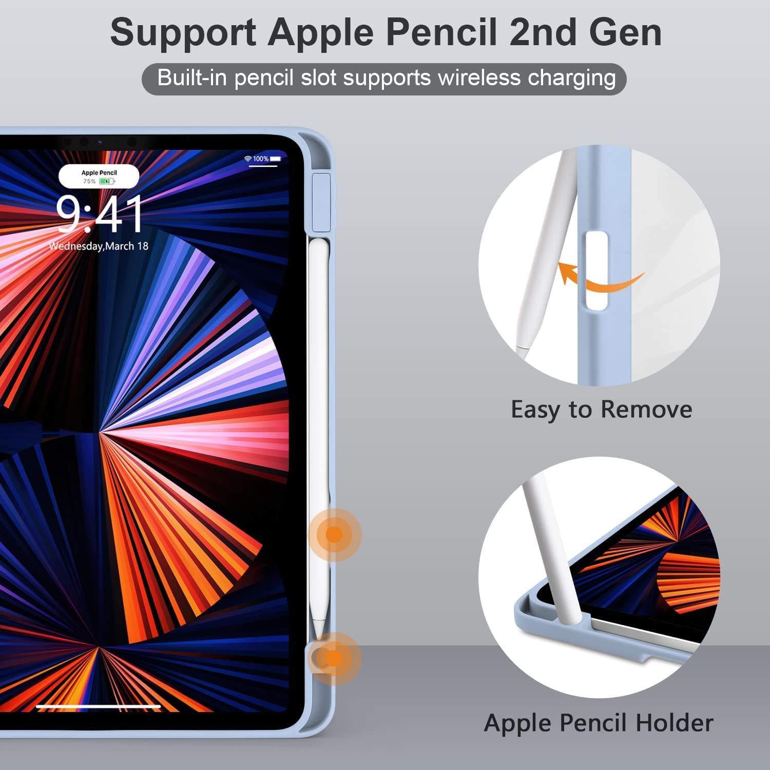 • We Got What You Need: Perfect cutouts for speakers, camera and other ports. Magnetic smart cover supports automatic sleep/wake function, protects and extends battery life. The tri-fold front cover can support iPad in two standing position for viewing and typing. Built-in Apple Pencil holder, Support the 2nd Gen Apple Pencil's magnetic attachment and charging features(Pencil is not included). Classic and professional