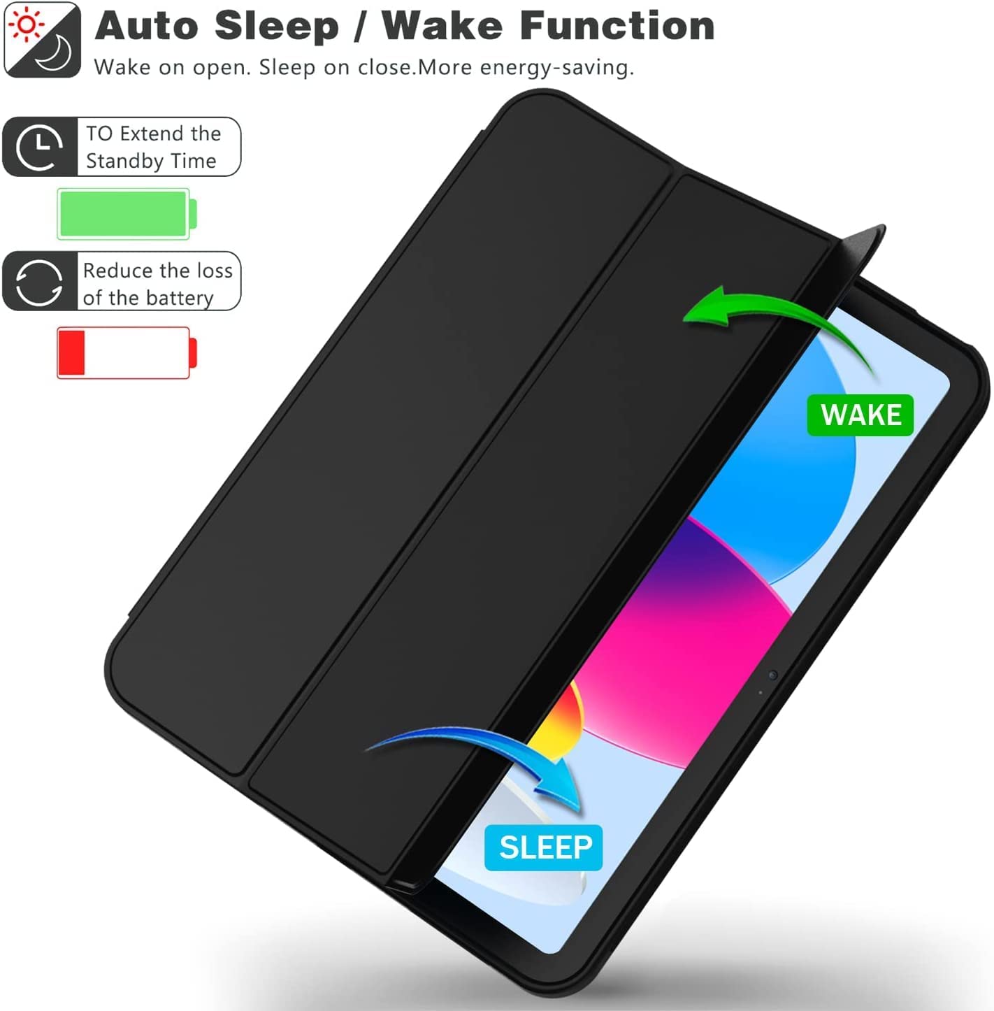 - Auto Sleep/Wake Cover: Built-in magnetic strip, our iPad case automatically wakes or puts your tablet to sleep when the lid is opened and closed, protects and extends battery life; Easy access to all features and controls even with the case on