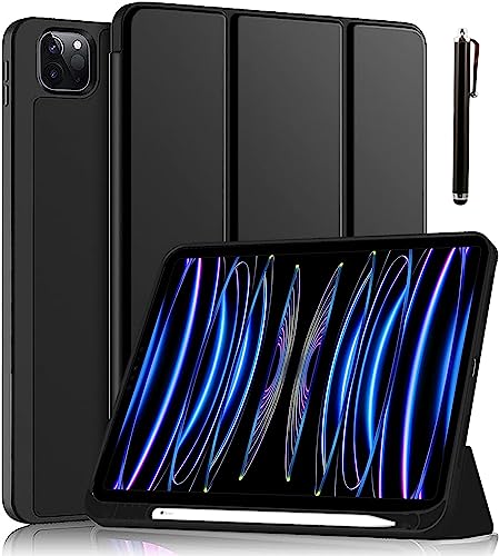 ProElite Smart Case Cover for Apple iPad Pro 11 inch 2022/2021 4th/3rd Generation [Auto Sleep/Wake ], Translucent & Hard Back, with Stylus, Black