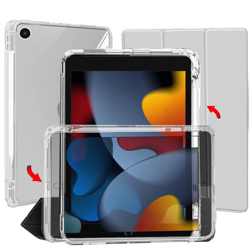ProElite Case for iPad Air 11 Inch M3/M2 2025/2024, iPad Air 10.9 inch 5th/4th Gen & iPad Pro 11 inch 4th/3rd Gen 2022 case Cover, Transparent Smart Flip Cover with Pencil Holder, Grey