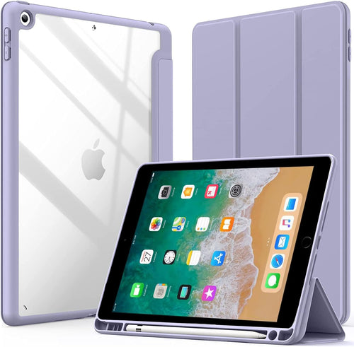 ProElite Smart Flip Case Cover for Apple iPad 9.7 inch 2018/2017 5th 6th Generation, Clear Soft Back with Pencil Holder, Lavender