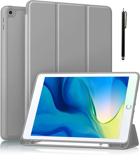 ProElite Smart Case for iPad 10.2 inch 2021 9th/8th/7th Gen [Auto Sleep/Wake Cover] [Pencil Holder] [Soft Flexible Case] Recoil Series - Grey with Stylus Pen