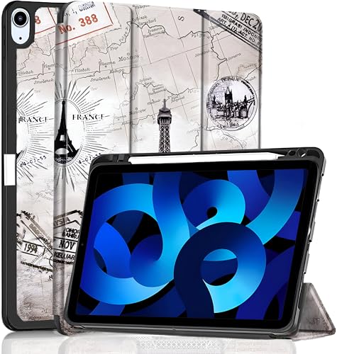 ProElite Pencil Case for iPad Air 5th/4th 10.9 Inch [Auto Sleep/Wake Cover] [Pencil Holder] [Soft Flexible Case] Recoil Series - Eiffel
