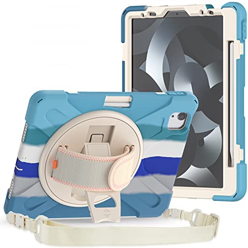 ProElite Rugged 3 Layer Armor case Cover for iPad Pro 11 inch 2022/2021 4th/3rd Gen with Pencil Holder, Shoulder Strap and Kickstand, Rainbow Blue