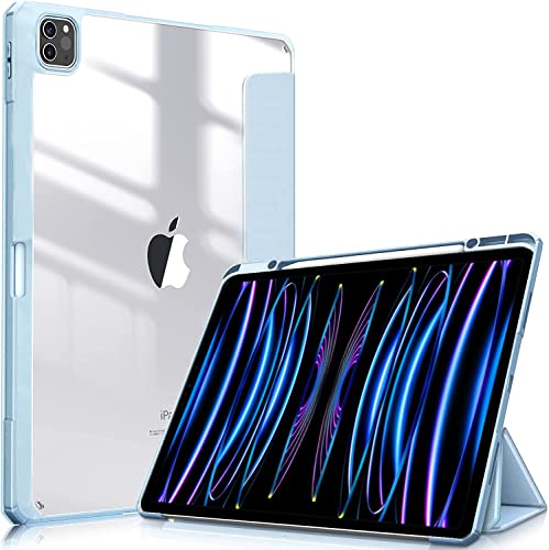 ProElite Smart Flip Case Cover for Apple iPad Pro 11 inch 4th/3rd Gen 2022/2021, Transparent Soft Back with Pencil Holder, Cyan Blue