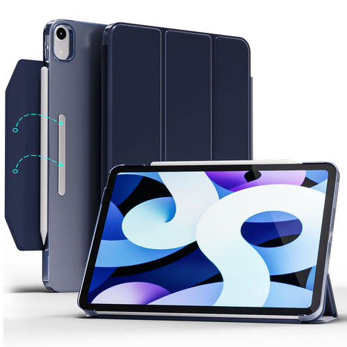 ProElite case Cover for Apple iPad Air 10.9 inch 5th/4th Gen, Transparent Smart Flip Cover for iPad Air 10.9 inch with Pencil Holder, Dark Blue