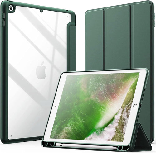 ProElite Smart Flip Case Cover for Apple iPad 9.7 inch 2018/2017 5th 6th Generation, Clear Soft Back with Pencil Holder, Dark Green