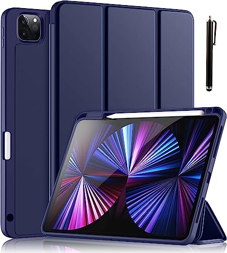 ProElite Pencil Case for iPad Pro 11 inch 4th/3rd Gen 2022/2021 & iPad Air 5th/4th Gen 10.9 inch, Auto Sleep/Wake Cover with Pencil Holder [Soft Flexible Case with Stylus]- Dark Blue