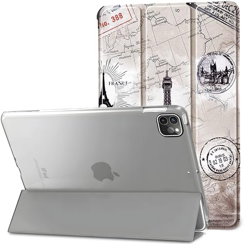 ProElite Smart Case Cover for Apple iPad Pro 11 inch 2022/2021 4th/3rd Generation [Auto Sleep/Wake ], Translucent & Hard Back, Eiffel