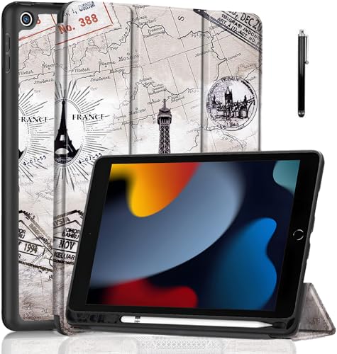 ProElite Cover for Apple iPad 10.2 inch case Cover, Smart Flip Case Cover for Apple iPad 10.2" 9th Gen (2021) / 8th Gen / 7th Gen with Stylus Pen, Eiffel