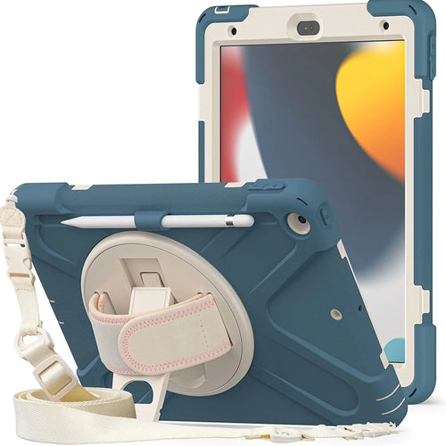 ProElite Rugged 3 Layer Armor case Cover for Apple iPad 10.2" 9th Gen (2021) / 8th Gen / 7th Gen with Hand Grip, Pencil Holder and Rotating Kickstand, Cornflower Blue