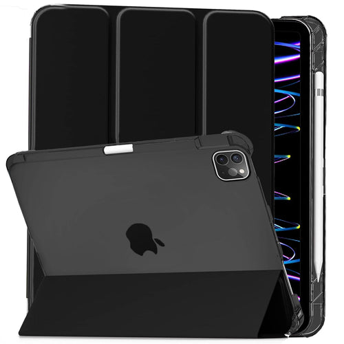 ProElite Smart Case Cover for Apple iPad Pro 11 inch 2022/2021 4th/3rd Generation [Auto Sleep/Wake ], Translucent & Hard Back, with Pencil Holder, Black