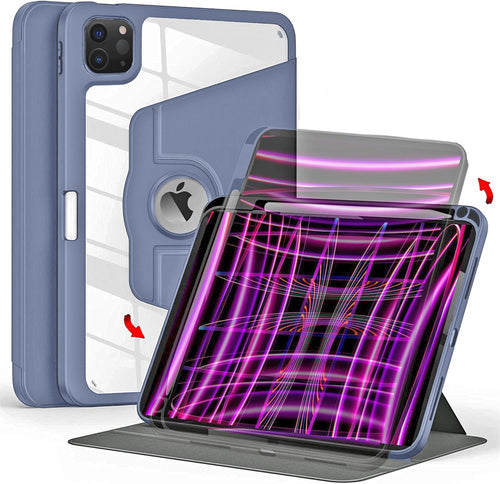 ProElite for iPad Air 5th/4th Gen 10.9" & Pro 11 inch cover, 360 Degree Rotatable Flip Cover for Apple iPad Air 5th/4th Gen 10.9" & Pro 11 inch 2022/2021/2020, Transparent Back with pencil holder, Lavender