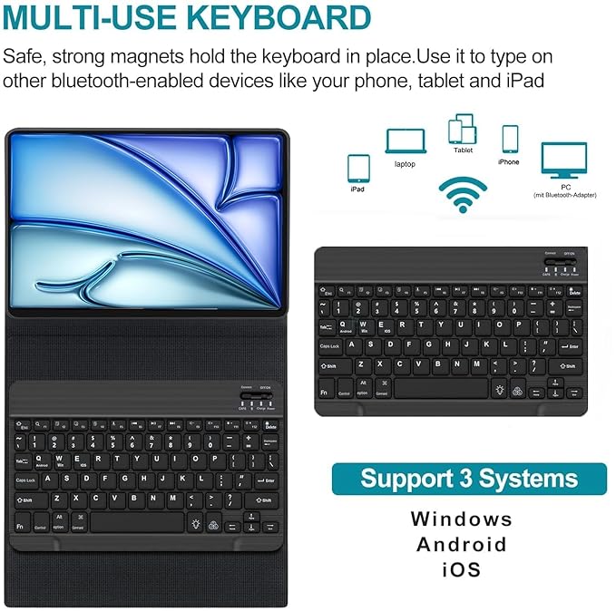 - Detachable Bluetooth keyboard with magnetic hybrid case that transforms your iPad into a laptop or your favorite book in less than a second. A slim and lightweight profile perfected by years of meticulous refinement make iPad 11 inch keyboards elegant in design and easy to use.