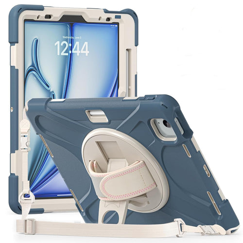 ProElite Rugged 3 Layer Armor case cover for Apple iPad Air 11 M3/M2 , iPad Air 5th/4th Gen 10.9 inch with Hand Grip, Pencil holder and Rotating KickStand, Cornflower Blue