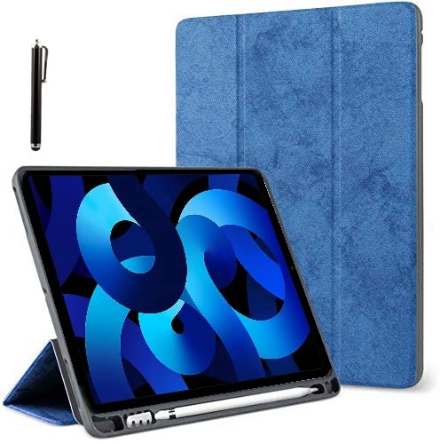 ProElite Smart PU Flip Case Cover for Apple iPad Air 10.9 inch 5th/4th Generation with Pencil Holder and Stylus Pen, Dark Blue
