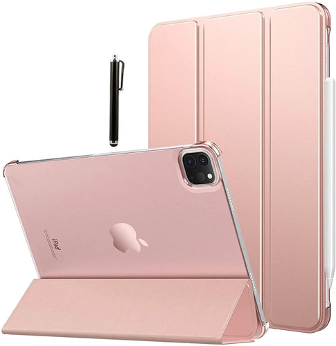 ProElite Smart Flip Case Cover for Apple iPad pro 12.9 2020 ,Translucent & Hard Back, Rose Gold [Support 2nd Gen Apple Pencil Charging]