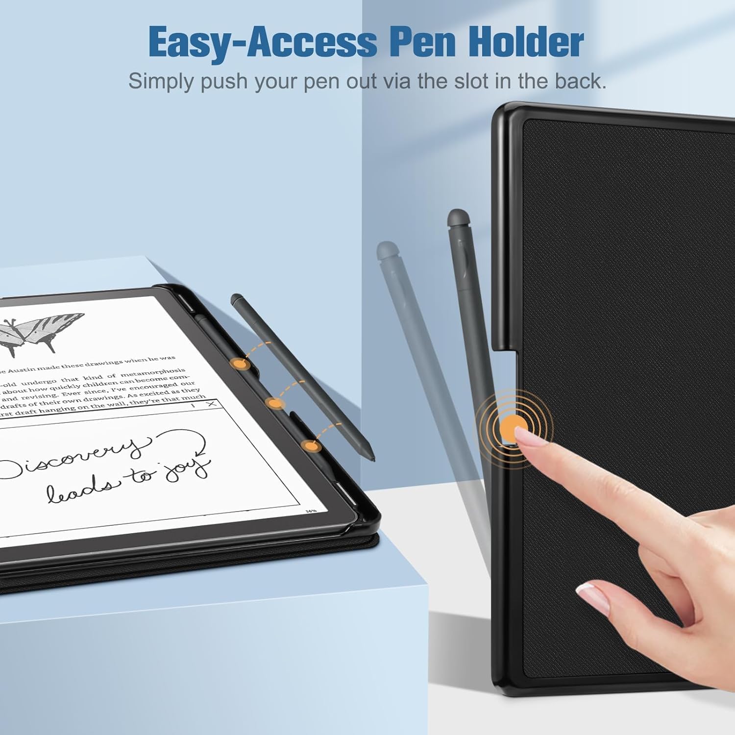 - [Easy-Access Pencil Holder] Specifically designed with a pen holder to protect and store your kindle scribe pen. Simply push the pen out via the slot in the back. Keep the pen always ready for you. (Case only, kindle scribe pen is NOT included!)