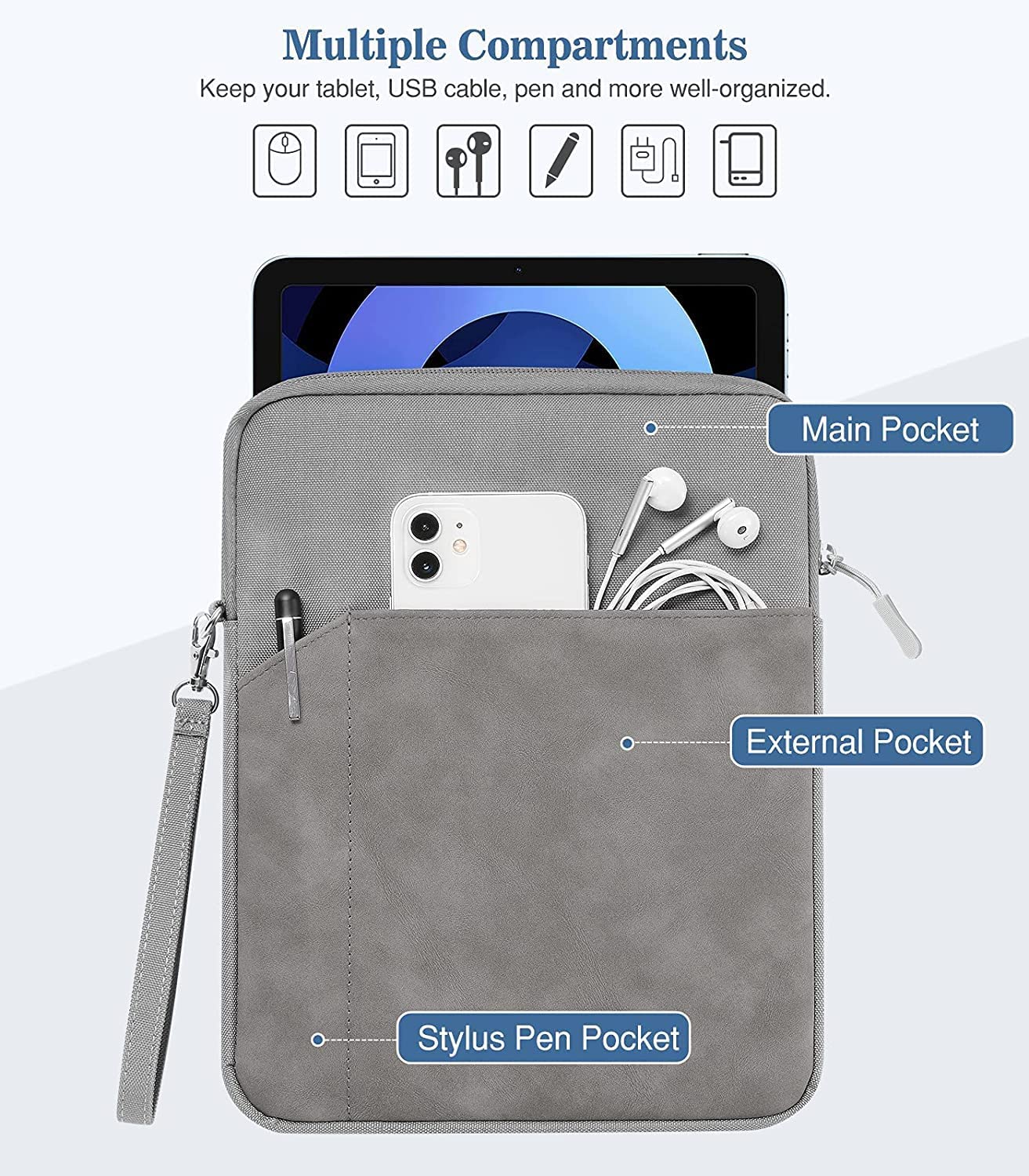 - CONVENIENT STORAGE – The main compartment for placing your tablet, and the small pocket is divided into two parts, which can not only put charger, mobile phone, USB cable, but also put your stylus pen on the other side. Keep your things in order.