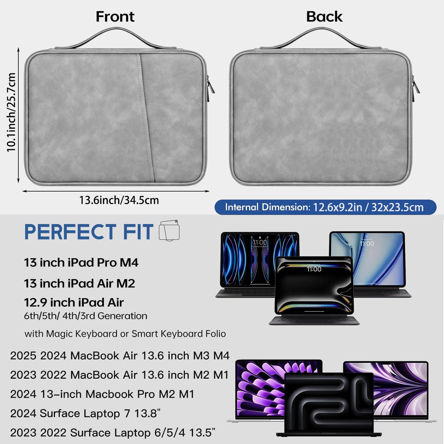 - COMPATIBILITY – The sleeve bag fits most 12"-13" Tablets. Fits Samsung Galaxy Tab S9 FE+/S7/S8 Plus/S9 Plus/S7 FE 12.4", Apple iPad Pro 12.9", MacBook Air/Pro Retina, Microsoft Surface Pro 4/5/6/7/8/9.