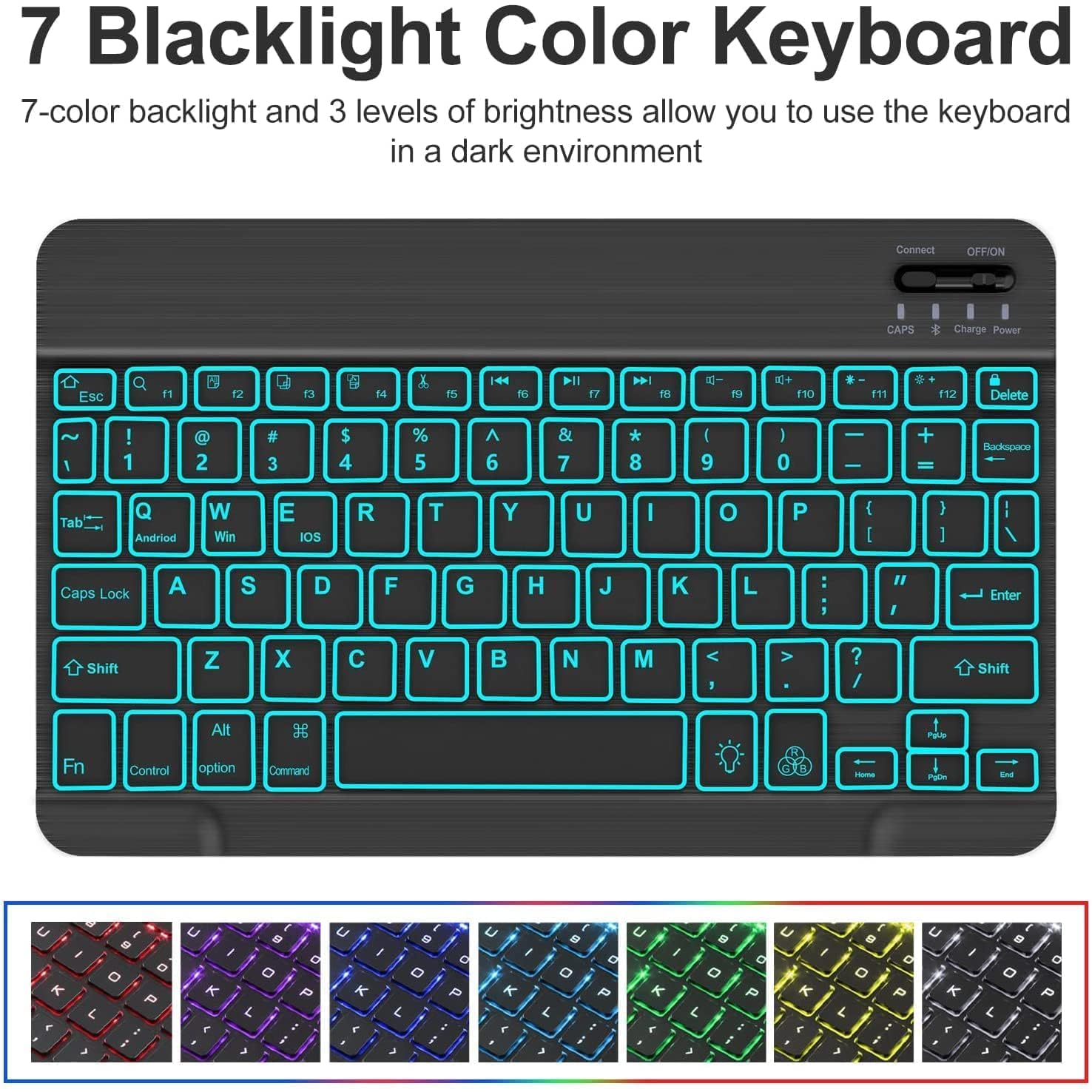 - ✔【Detachable Wireless Keyboard with Rainbow Backlit】7 colors rainbow back-light make typing fun and easy in the dark/night, you can change the colors on keyboard's left, middle and right seperatly. The Bluetooth connection is stable and mechanical scissor keys are quiet with rebound feature. With the U.S Chipset, helping you to type stable and fast. Rechargeable battery make keyboard can work wireless for longer time, provide the freedom to read or work anywhere at any time