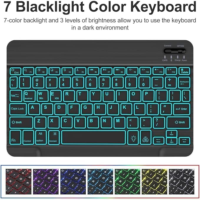 - ✔【Detachable Wireless Keyboard with Rainbow Backlit】7 colors rainbow back-light make typing fun and easy in the dark/night, you can change the colors on keyboard's left, middle and right seperatly. The Bluetooth connection is stable and mechanical scissor keys are quiet with rebound feature. With the U.S Chipset, helping you to type stable and fast. Rechargeable battery make keyboard can work wireless for longer time, provide the freedom to read or work anywhere at any time