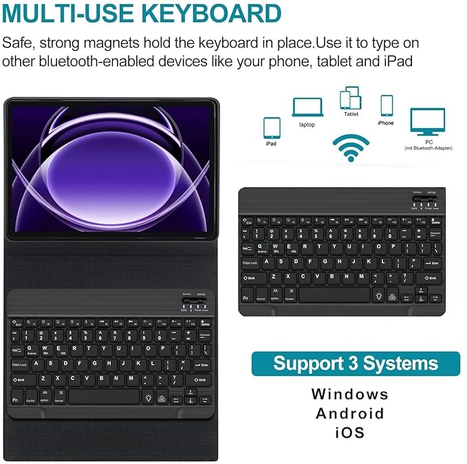 - ✔【High-Quality & Ideal Gift Choice】Real hard laptop style keyboard with high end ABS material. Not cheap silicone keyboard as other cases in market. A spring mechanism underneath each key ensures a tactile response with every stroke, helping you to type faster and with less error than on a touchscreen. A fabulous gift choice on the holiday gift wish list for your beloved ones. Suitable for all special days for parents, kids, friends, lovers