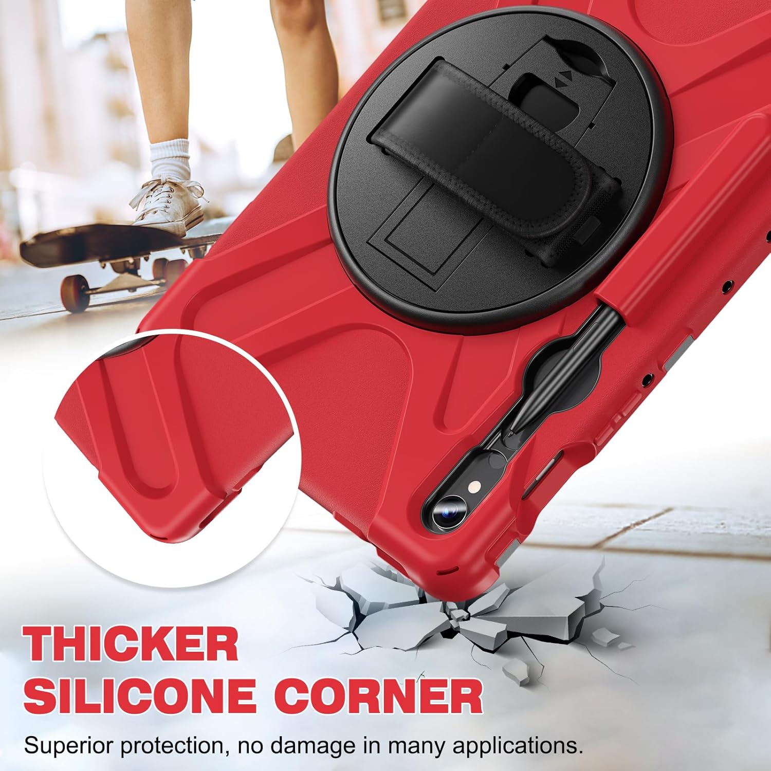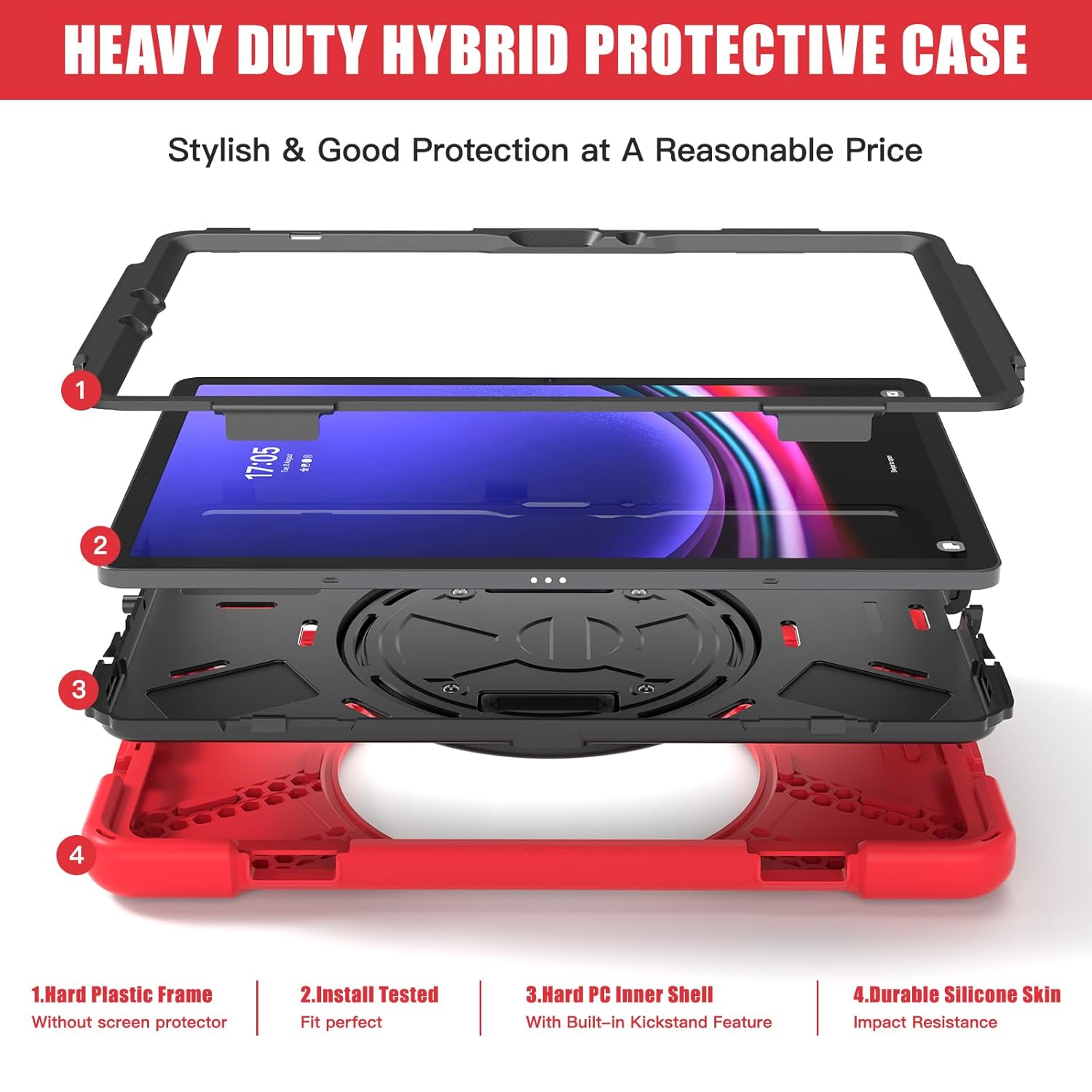 ProElite Cover for Samsung Galaxy Tab S10 Lite 10.9"/S9 Fe 10.9/S10 FE 10.9"/ S9/S8/S7 11" Cover Case, Rugged 3 Layer Armor case Cover and Rotating Kickstand, Red