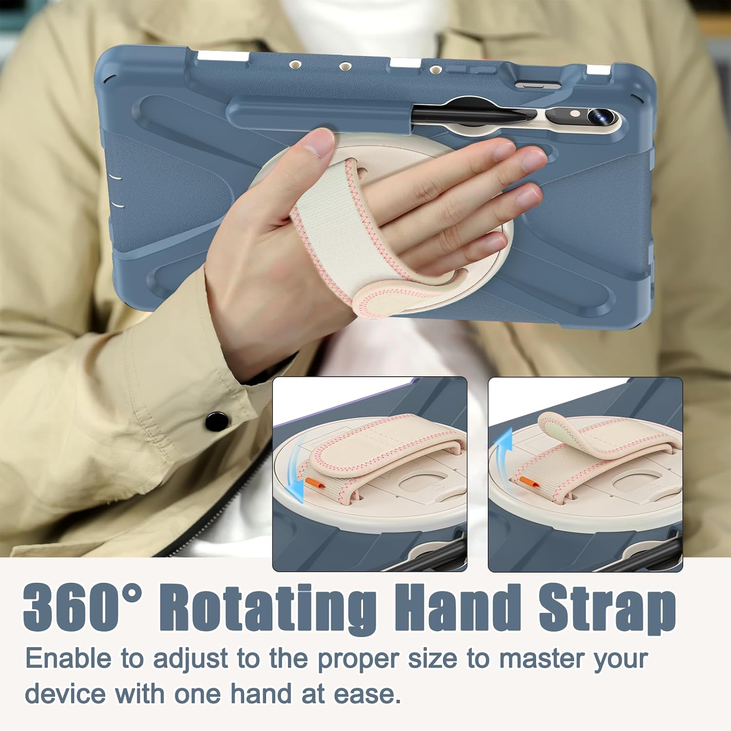 - There is a sturdy 360 degrees swivel foldable kickstand. Convenient for watching videos, conferences, construction and outdoor work.