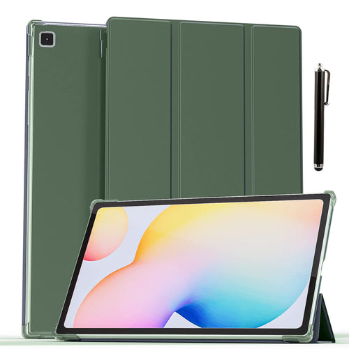 ProElite Smart Flip Case Cover for Samsung Galaxy Tab S6 Lite 10.4 Inch 2022 (SM-P610/P615) Translucent Back with Stylus Pen, Dark Green