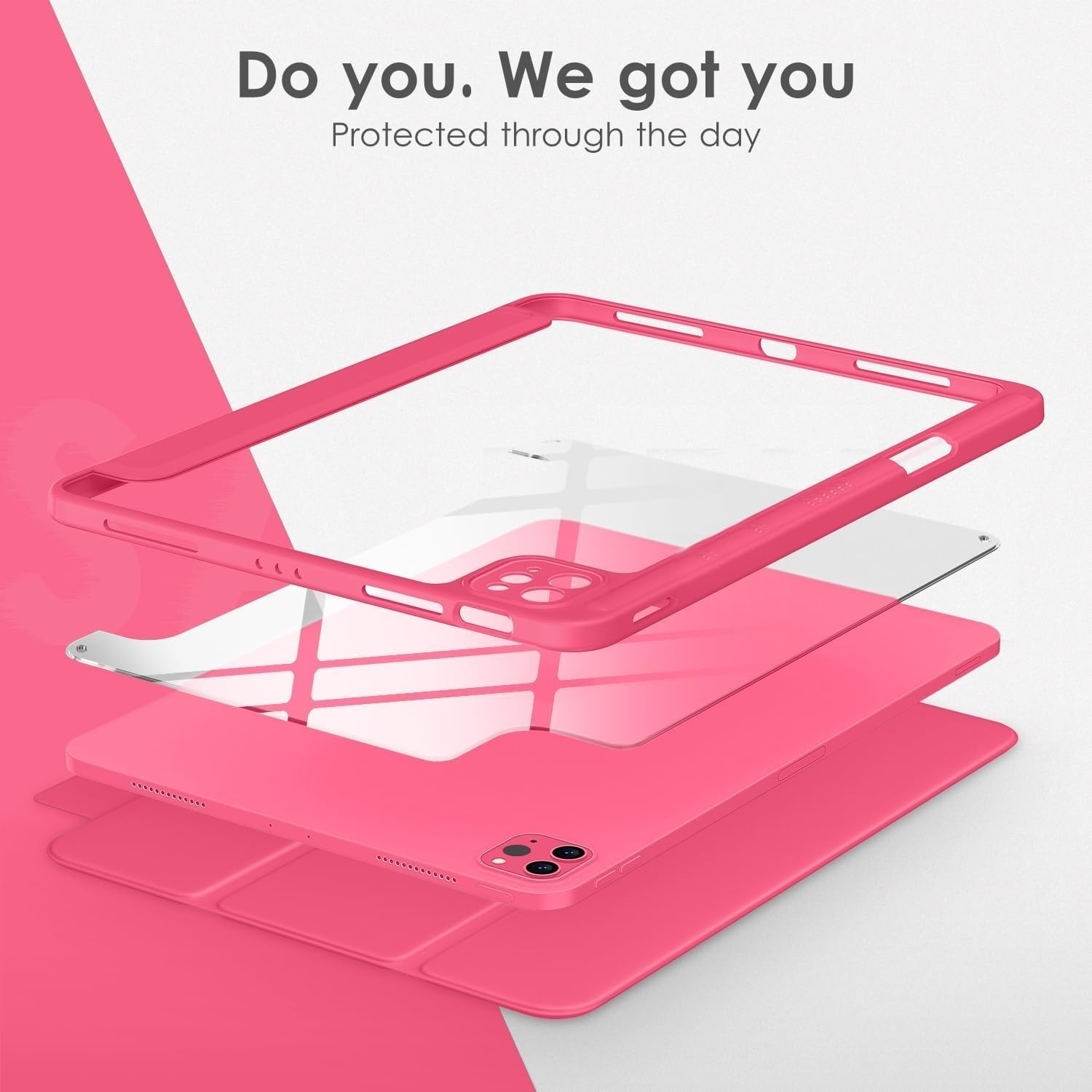- We Got What You Need: Perfect cutouts for speakers, camera and other ports. Magnetic smart cover supports automatic sleep/wake function, protects and extends battery life. The tri-fold front cover can support tablet in two standing position for viewing and typing. Built-in Pen holder. Classic and professional