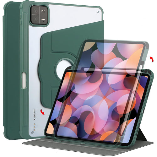 ProElite Cover for Xiaomi Mi Pad 6 Cover Case, 360 Degree Rotatable Smart Flip Case Cover for Xiaomi Mi Pad 6 11 inch Transparent Back with Pencil Holder, Dark Green