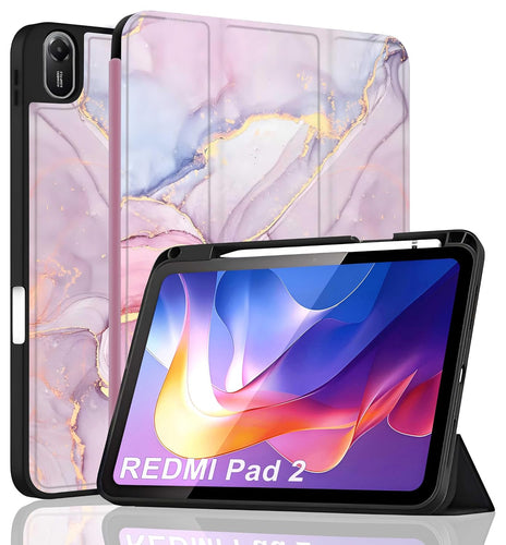 ProElite Cover for Xiaomi Redmi Pad 2 11 inch Case, Soft Flexible Flip Case Cover for Xiaomi Redmi Pad 2 11 inch with Pen Holder, Support Auto Sleep Wake, [Recoil Series] - Marble Pink