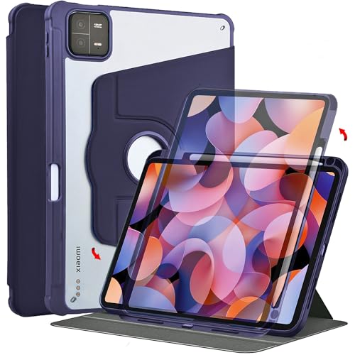 ProElite Cover for Xiaomi Mi Pad 6 Cover Case, 360 Degree Rotatable Smart Flip Case Cover for Xiaomi Mi Pad 6 11 inch Transparent Back with Pencil Holder, Dark Blue